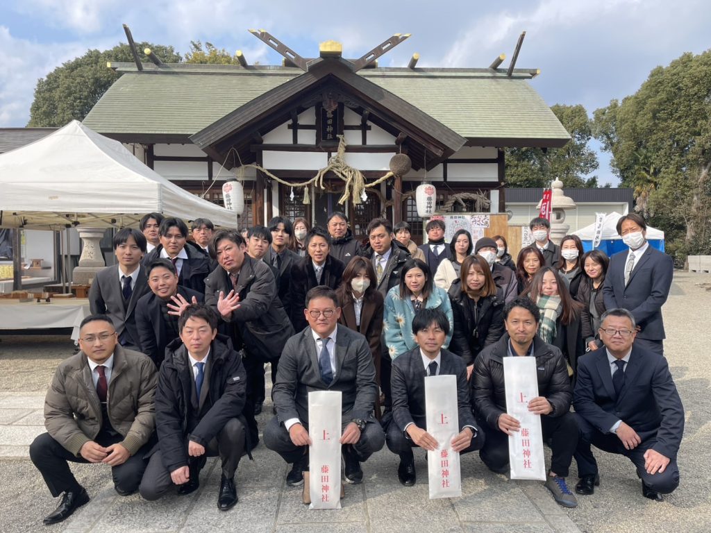 年始の恒例行事として、社員全員で藤田神社へ初詣に行き、